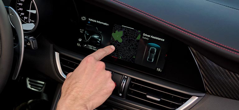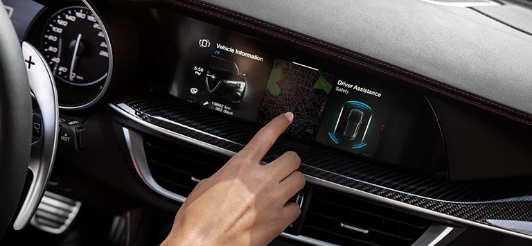 Geconnecteerd met de wereld.En met uw auto.Het Alfa™ Connect System is een pakket diensten dat een geweldige connectiviteit creëert en garandeert met Android Auto™ en Apple CarPlay.